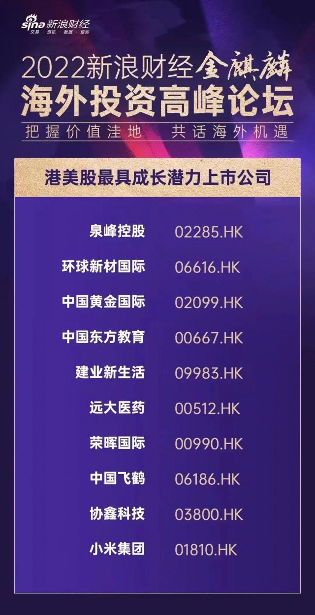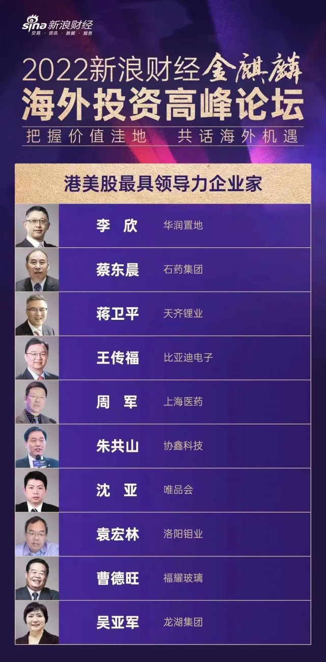 2022年9月23日,在新浪財經(jīng)主辦的2022年金麒麟海外投資峰會暨港美股最佳上市公司評選活動中,協(xié)鑫科技(03800.HK)憑借在光伏材料領域的科技創(chuàng)新與行業(yè)貢獻,榮膺“2022新浪財經(jīng)港美股最具成長潛力上市公司”,協(xié)鑫科技董事局主席朱共山先生榮獲“2022新浪財經(jīng)港美股最具領導力企業(yè)家”稱號,獲授該稱號的還有曹德旺、王傳福等10位杰出企業(yè)家。