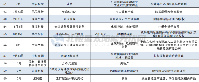各家公司投資跨界方式不盡相同,有通過收購、設(shè)立光伏公司,或是投資新建光伏項目,或是與其他企業(yè)共建新公司,進入領(lǐng)域從多晶硅、硅片、電池組件、光伏膠膜輔材以及光伏電站等多個細分賽道。