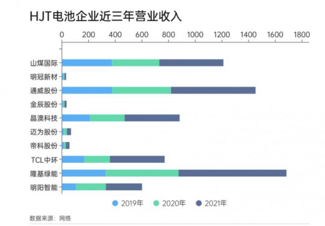 諸多公司已進(jìn)入該賽道。主流企業(yè)包括明陽智能、隆基綠能、TCL中環(huán)、帝科股份、邁為股份、晶澳科技、金辰股份、通威股份、明冠新材、山煤國際等。PVInfolink預(yù)計,從2023年起,HJT技術(shù)路線將有10GW級的產(chǎn)出。