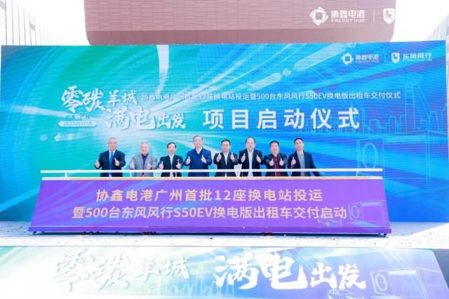 本次啟動站點(diǎn)為協(xié)鑫電港自研單通道換電站,單站每日可服務(wù)336車次,單次換電僅需90秒,羊城首批入網(wǎng)出租車司機(jī)將享受極致補(bǔ)能體驗(yàn)?;顒蝇F(xiàn)場,東風(fēng)柳汽乘用車銷售公司副總經(jīng)理陳經(jīng)新、協(xié)鑫能科乘用車事業(yè)部總經(jīng)理諸葛環(huán)環(huán)代表雙方發(fā)布聯(lián)名款東風(fēng)風(fēng)行S50EV換電版出租車?!皡f(xié)鑫能科”與“東風(fēng)風(fēng)行”的雙logo成為這款車型的醒目尾標(biāo),充分體現(xiàn)了協(xié)鑫能科以車為核,與車企深度融合,雙向賦能,助力廣州在城市交通領(lǐng)域率先實(shí)現(xiàn)“雙碳”目標(biāo)的決心。隨著未來更多車輛投入運(yùn)營,將有更多市民體驗(yàn)到S50EV的優(yōu)秀性能和協(xié)鑫電港的90秒換電優(yōu)勢。