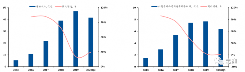 公司是光伏自動化組件設(shè)備的頭部供應(yīng)商,下游客戶涵蓋國內(nèi)多家知名光伏組件企業(yè),同時積極布局新型組件設(shè)備,向壁壘較高的電池設(shè)備領(lǐng)域延伸,探索新增長點。2015-2019 年,公司業(yè)績大幅增長,營業(yè)收入從 2.92 億元增長至 7.9 億元,CAGR 為 31.08%。截止 2020 年第三季度,公司的歸母凈利潤為 0.65 億元,同比增長 65%,超過 2019 年全年歸母凈利潤。合同負(fù)債已達(dá) 3.71 億元,為 2021 年業(yè)績奠定良好基礎(chǔ)。2019 年,光伏組件自動化生產(chǎn)線作為公司的主營業(yè)務(wù),占總營收的 93.11%,輔之以串焊機、層壓機等價值量較高的單機設(shè)備。