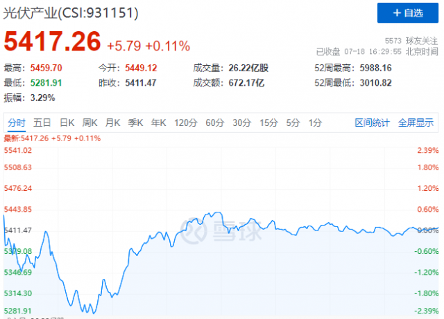 7月18日,光伏板塊迎來分化行情,逆變器、電站、HJT概念股漲幅居前,而硅片、電池、金剛線概念股則全線大跌。受此影響,中證光伏產(chǎn)業(yè)指數(shù)(CSI:931151)報收5417點,微漲0.11%。