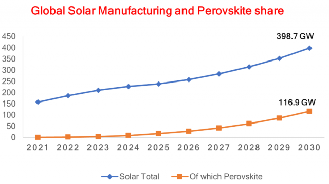 鈣鈦礦在過(guò)去十年中作為一種新型的高效太陽(yáng)能電池材料脫穎而出,其功率轉(zhuǎn)換效率達(dá)到了25.7%。(1,2) 鈣鈦礦光活性材料具有固有的優(yōu)勢(shì),可實(shí)現(xiàn)高功率轉(zhuǎn)換效率,例如長(zhǎng)載流子擴(kuò)散長(zhǎng)度、高載流子遷移率、低激子結(jié)合能、高吸收系數(shù)和通過(guò)交換前體組分的帶隙可調(diào)性。(3,4) 這些材料的另一個(gè)重要優(yōu)點(diǎn)是可以在低溫下通過(guò)溶液方法來(lái)沉積薄膜,它可以通過(guò)高通量的卷對(duì)卷工藝在柔性聚合物基材上進(jìn)行經(jīng)濟(jì)高效的生產(chǎn)。(5) 預(yù)計(jì)到2030 年,鈣鈦礦太陽(yáng)能技術(shù)將超過(guò)全球光伏市場(chǎng)的29%。(6)