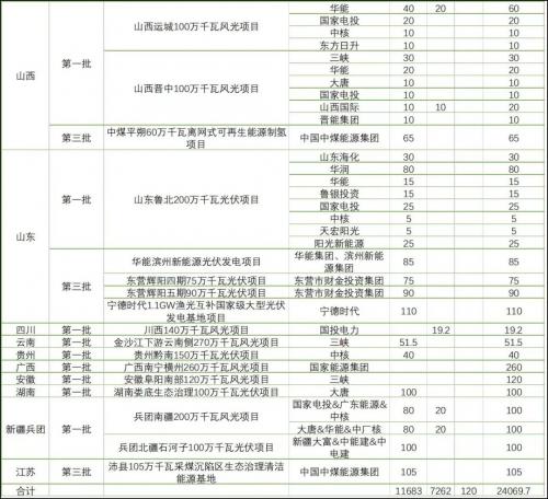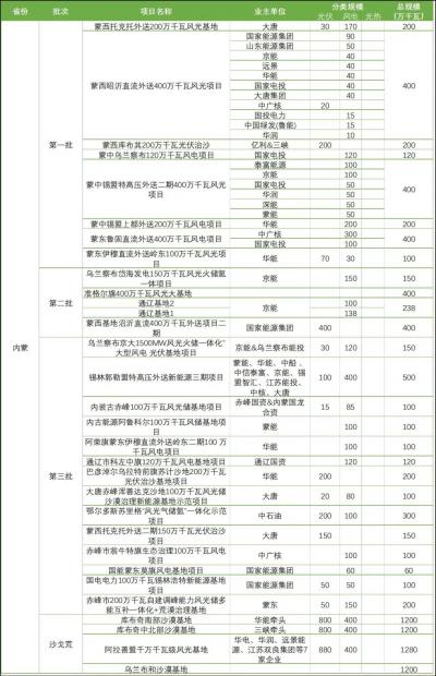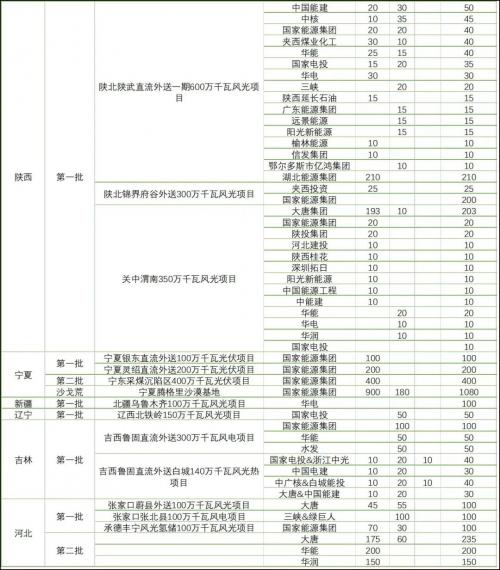 隨著相關(guān)各類信息的不斷披露,各個風(fēng)光大基地項目的業(yè)主單位也逐漸明確。