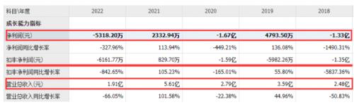 可以看到,在近五年里,該公司扣非凈利潤除2021年稍有盈余以外,基本年份都處于虧損狀態(tài),而2021年營收也達(dá)到近5年新高。然而到2022年又迅速大跌至1.91億元的同期低谷。業(yè)績“坐過山車”也讓該公司備受資本市場的質(zhì)疑。