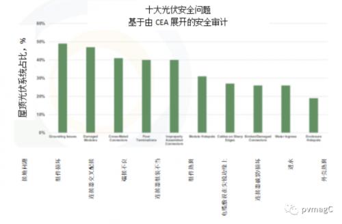 工程服務(wù)公司CEA針對(duì)600多套屋頂光伏系統(tǒng)展開(kāi)了安全審計(jì),結(jié)果發(fā)現(xiàn)97%的裝置存在重大安全問(wèn)題。此次檢查范圍覆蓋美國(guó)、英國(guó)、意大利、西班牙、印度、日本、阿拉伯聯(lián)合酋長(zhǎng)國(guó)、澳大利亞、加拿大、墨西哥、捷克共和國(guó)、德國(guó)、波蘭和法國(guó)。