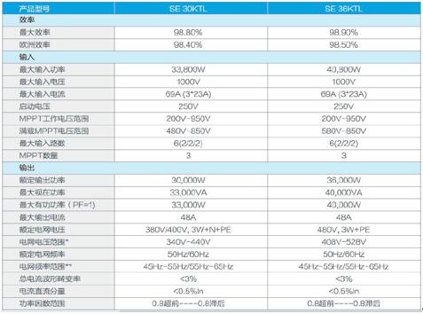 盛能杰SE-30KTL逆變器為三路MPPT,共六路PV輸入。具體參數(shù)如下:
