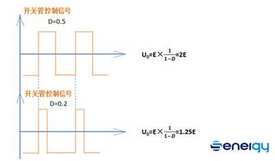 從①式我們可以看到,輸出電壓U0>E,即Boost實現(xiàn)了其抬升電壓的作用。這時,只要給開關管S一個合適的占空比控制信號,便可實現(xiàn)輸出電壓的調整,并得到想要的電壓值,從而實現(xiàn)拓寬輸出電壓的目的。