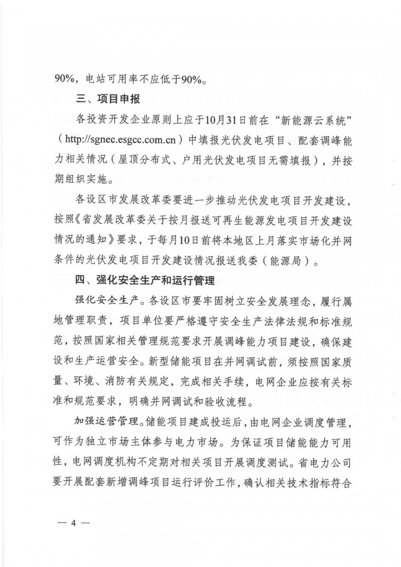 此外,文件要求各投資開發(fā)企業(yè)原則上應于10月31日前在“新能源云系統(tǒng)”中填報光伏發(fā)電項目、配套調(diào)峰能力相關情況。2021年落實的市場化項目原則上應于2023年6月底建成并網(wǎng);配套調(diào)峰能力原則上應為2021年1月1日以后投產(chǎn)的項目,應與光伏發(fā)電項目同步建成、同步并網(wǎng)。