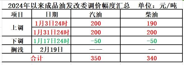 今年以來,國(guó)內(nèi)成品油零售限價(jià)已經(jīng)歷四輪調(diào)整,分別為“兩漲一跌一擱淺”。漲跌互抵后,國(guó)內(nèi)汽、柴油價(jià)格每噸較去年底分別提高350元、340元。若本輪成品油調(diào)價(jià)政策落地,將是2024年的第三次上漲,今年以來成品油調(diào)價(jià)也將呈現(xiàn)“三漲一跌一擱淺”的格局。
