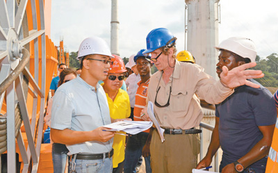 由中企承建的喀麥隆曼維萊水電站主體部分今年2月通過喀方臨時驗收委員會驗收。該項目位于喀麥隆南部大區(qū),總投資6.37億美元,總裝機容量211兆瓦。圖為監(jiān)理團隊和喀方業(yè)主成員對水電站主體部分進行技術(shù)驗收。