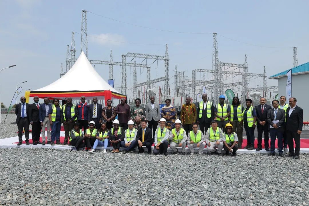 烏干達(dá)總統(tǒng)穆塞韋尼(前排右五)為Nebbi變電站項(xiàng)目揭牌