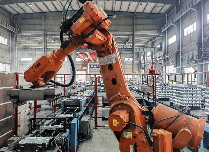 圖為中國五礦所屬株冶新材鑄造鋅合金自動化生產(chǎn)線碼錠機器人