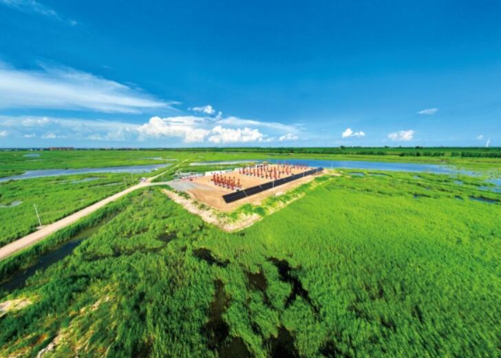 中國石油大慶油田碳中和生態(tài)園區(qū) 亞洲最大陸地采油平臺——中國石油吉林油田新215區(qū)塊16號大井叢平臺正在平穩(wěn)運行,油氣生產(chǎn)實現(xiàn)集約化、現(xiàn)代化、高效化