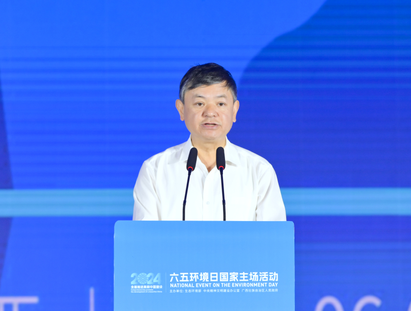6月5日,生態(tài)環(huán)境部、中央精神文明建設(shè)辦公室、廣西壯族自治區(qū)人民政府在南寧市聯(lián)合舉辦2024年六五環(huán)境日國(guó)家主場(chǎng)活動(dòng)。生態(tài)環(huán)境部部長(zhǎng)黃潤(rùn)秋,廣西壯族自治區(qū)黨委書(shū)記劉寧出席活動(dòng)并講話(huà)。廣西壯族自治區(qū)人民政府主席藍(lán)天立,中央宣傳部部務(wù)會(huì)成員、中央精神文明建設(shè)辦公室專(zhuān)職副主任胡凱紅出席活動(dòng)并致辭。