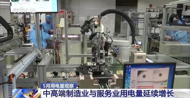 從各地亮眼的用電量數(shù)據(jù)中,記者還發(fā)現(xiàn),今年我國在中高端制造業(yè)與服務(wù)業(yè)的用電量都有顯著的增長,5月份,高技術(shù)及裝備制造業(yè)、服務(wù)業(yè)用電量增長均高于全社會用電量。