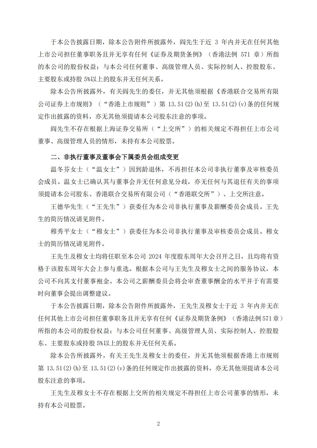 二、非執(zhí)行董事及董事會(huì)下屬委員會(huì)組成變更