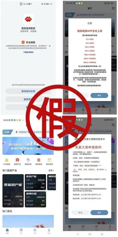 8月29日,國(guó)家能源集團(tuán)發(fā)布公告稱,近期,有不法分子假冒“國(guó)家能源集團(tuán)”名義發(fā)布手機(jī)應(yīng)用程序,建立虛假“國(guó)家能源官方微信群”,并提供虛假的“神東礦區(qū)”“朔黃鐵路”等所謂“投資產(chǎn)品”。