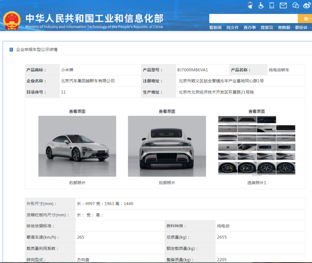 官宣2024年上半年與大眾見面的小米汽車,近日已經出現(xiàn)在工信部新車名錄中。12月12日,工信部發(fā)布《道路機動車輛生產企業(yè)及產品》(第377批)以及《免征車輛購置稅的新能源汽車車型目錄》(第七十二批)。小米牌兩款純電動轎車車型現(xiàn)身工信部該批次目錄。(此前報道:小米汽車大消息!)