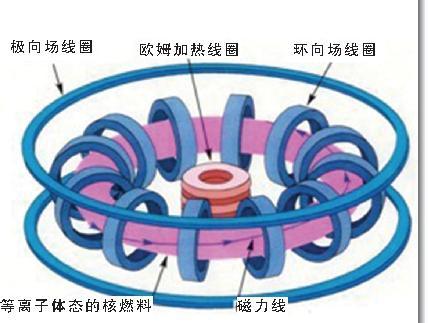 還有什么約束辦法嗎?因?yàn)榫圩冃枰蟽|度高溫,不能用任何容器盛裝,所以人類(lèi)想到用強(qiáng)磁場(chǎng)把帶電粒子懸浮起來(lái),即磁約束。