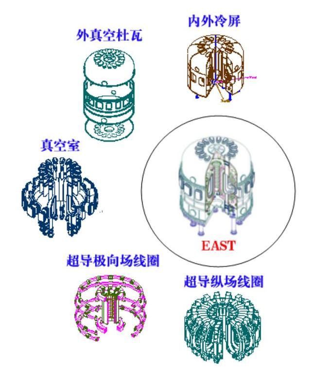 ▲全超導(dǎo)托卡馬克核聚變實(shí)驗(yàn)裝置(EAST)