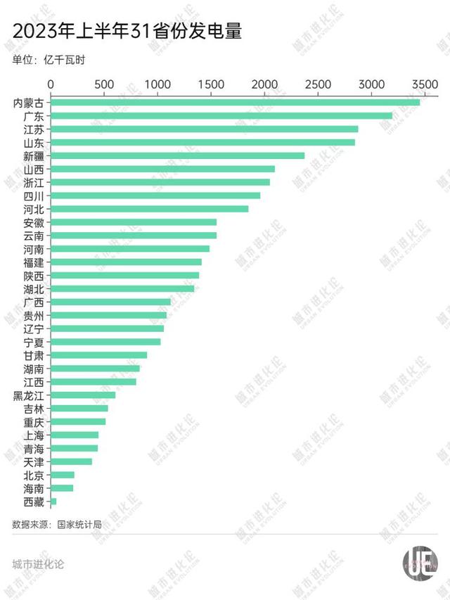 在內蒙古之外,山西、新疆、云南上半年富余電量均在400億千瓦時以上,寧夏、貴州、四川、陜西也超過200億千瓦時,都是“西電東送”的重要力量,也是電力“缺口”大省的強大“外援”。