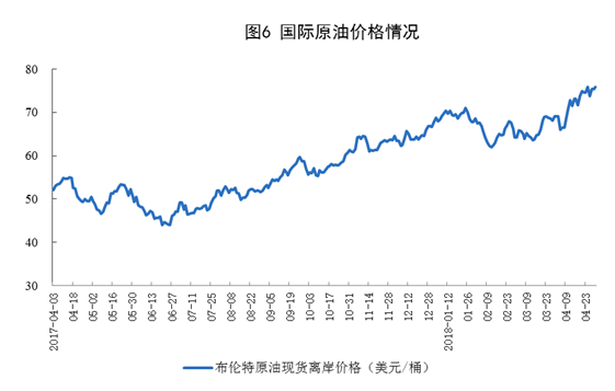受地緣政治因素影響,原油價(jià)格持續(xù)走高,布倫特原油現(xiàn)貨離岸價(jià)格創(chuàng)下2015年以來最高水平。截至4月30日,價(jià)格為75.92美元/桶,比3月底上漲6.90美元/桶。在此拉動(dòng)下,國內(nèi)成品油零售價(jià)格也相應(yīng)大幅上調(diào)。