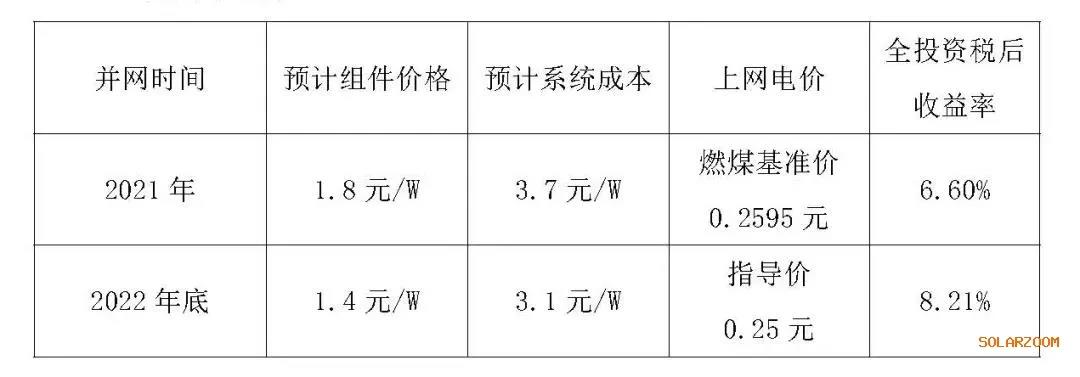 以2021年指導價下降幅度較大的新疆(下降0.0095元)阿克蘇100MW項目舉例: