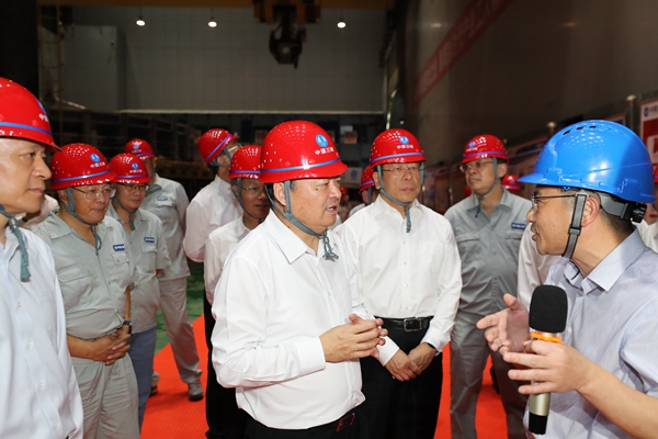 白鶴灘水電站是當(dāng)今世界在建規(guī)模最大、技術(shù)難度最高的水電工程。郝鵬來到白鶴灘水電站,登上壩頂,俯瞰工程全貌,深入地下廠房左岸1號(hào)機(jī)組、右岸14號(hào)機(jī)組,看望慰問奮戰(zhàn)在一線的企業(yè)干部職工,與大家親切交流,詳細(xì)了解工程總體規(guī)劃、世界最大百萬千瓦水輪發(fā)電機(jī)組發(fā)電、庫區(qū)生態(tài)環(huán)境保護(hù)等情況。郝鵬指出,白鶴灘水電站是中央企業(yè)全產(chǎn)業(yè)鏈協(xié)同創(chuàng)新、自主創(chuàng)新的典型范例,由中國(guó)三峽集團(tuán)牽頭,國(guó)家電網(wǎng)、東方電氣集團(tuán)、哈電集團(tuán)、中國(guó)電建、中國(guó)能建等積極參與,在水電工程的設(shè)計(jì)規(guī)劃、材料科學(xué)、裝備制造、施工技術(shù)、智能管理等領(lǐng)域?qū)崿F(xiàn)了多項(xiàng)技術(shù)創(chuàng)新,創(chuàng)造了多個(gè)世界第一,令人鼓舞振奮、倍感自豪。要再接再厲、苦干實(shí)干,科學(xué)有序推進(jìn)后續(xù)各項(xiàng)工作,高標(biāo)準(zhǔn)高質(zhì)量打造精品工程,確保全部工程如期建成投產(chǎn)、安全穩(wěn)定運(yùn)行,為實(shí)施好“西電東送”國(guó)家重大工程,保障國(guó)家能源安全提供有力支撐。