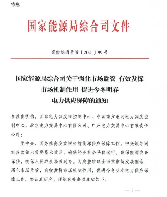 ? 近日,國家能源局綜合司發(fā)布特急通知,要求強化市場監(jiān)管、發(fā)揮市場機制、促進電力供應保障。