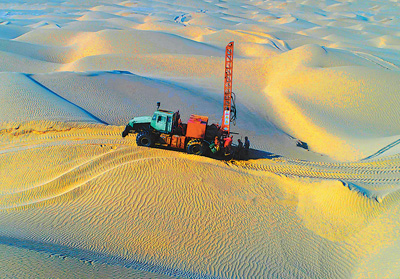 中石化地球物理公司物探隊(duì)伍在新疆塔克拉瑪干大漠深處進(jìn)行油氣勘探,助力我國油氣供應(yīng)保障能力穩(wěn)步提升。