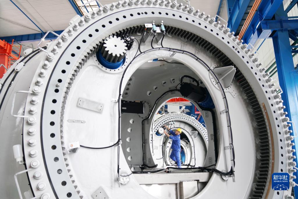 在黑龍江省齊齊哈爾市中國(guó)一重集團(tuán)有限公司風(fēng)電裝備生產(chǎn)制造廠生產(chǎn)車間,工人進(jìn)行生產(chǎn)作業(yè)(2021年7月1日攝)。