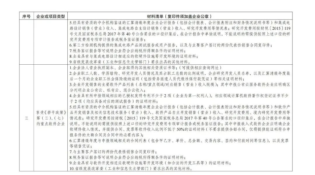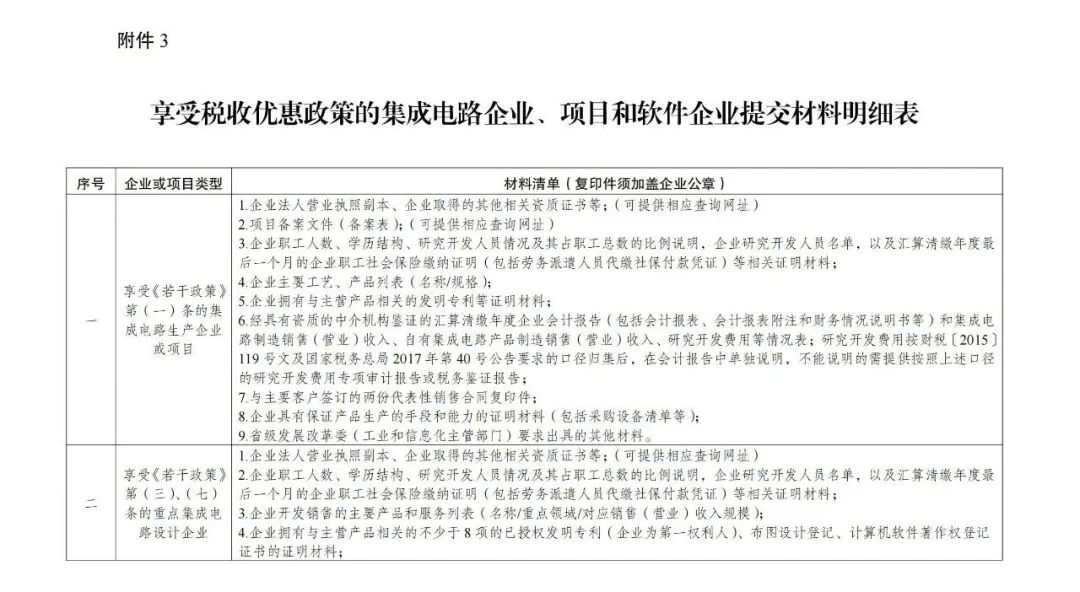 3.享受稅收優(yōu)惠政策的集成電路企業(yè)、項目和軟件企業(yè)提交材料明細(xì)表