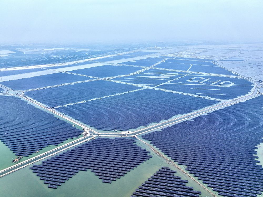 圖為華電天津海晶100萬千瓦“鹽光互補”光伏項目