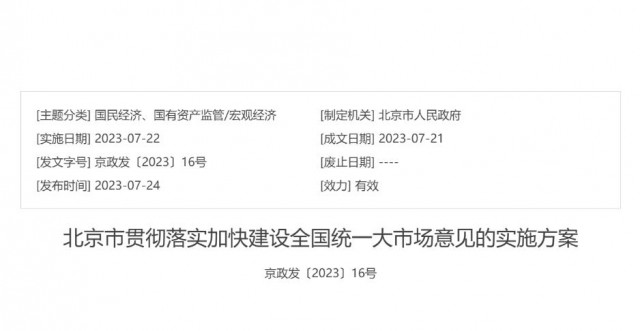 《北京市貫徹落實加快建設(shè)全國統(tǒng)一大市場意見的實施方案》全文如下: