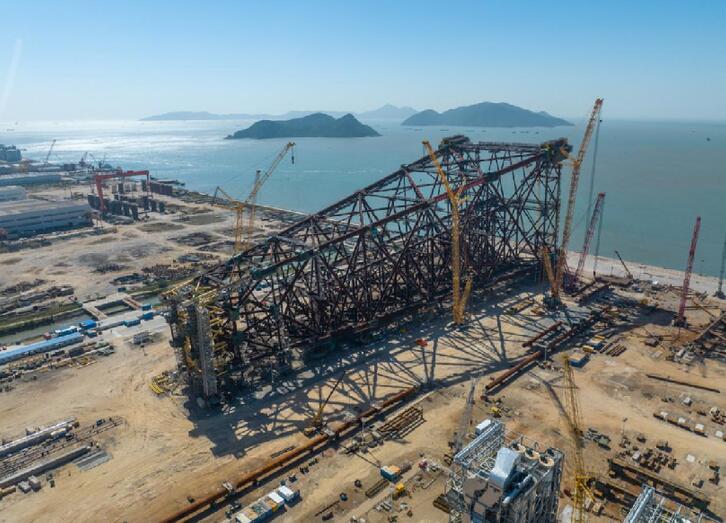 我國自主設(shè)計(jì)建造的深水導(dǎo)管架“?;?hào)”建設(shè)完工。“?;?hào)”導(dǎo)管架總高338米,總重達(dá)3.7萬噸,均刷新亞洲紀(jì)錄,將與“海洋石油122”共同服役于我國首個(gè)深水油田流花11-1/4-1油田,標(biāo)志我國海洋深水油氣裝備設(shè)計(jì)建造能力實(shí)現(xiàn)穩(wěn)步提升。