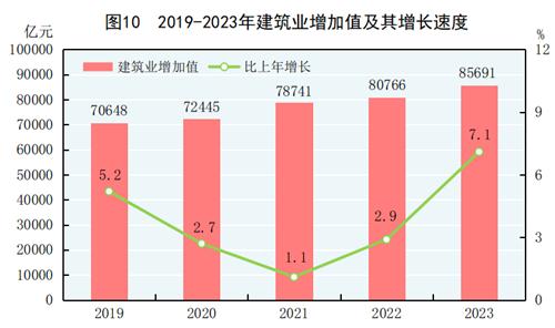 全年建筑業(yè)增加值85691億元,比上年增長7.1%。全國具有資質(zhì)等級(jí)的總承包和專業(yè)承包建筑業(yè)企業(yè)利潤8326億元,比上年增長0.2%,其中國有控股企業(yè)4019億元,增長4.3%。