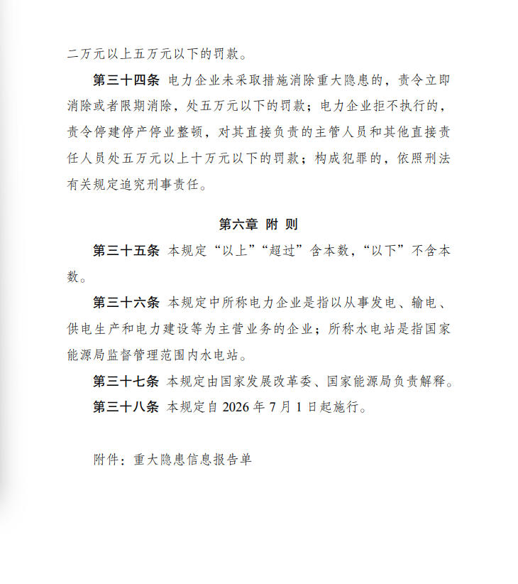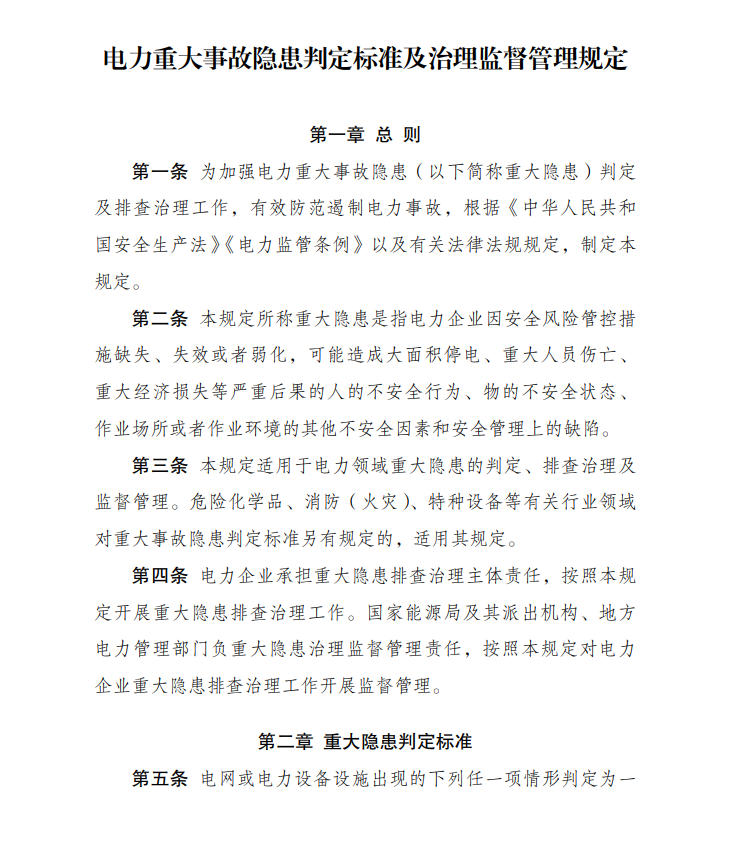 《電力重大事故隱患判定標(biāo)準(zhǔn)及治理監(jiān)督管理規(guī)定》 2026年第41號(hào)令