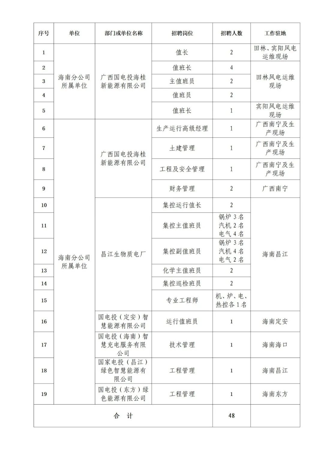 詳見(jiàn)《國(guó)家電力投資集團(tuán)有限公司海南分公司及所屬單位招聘崗位職責(zé)及任職條件》(附件1)。