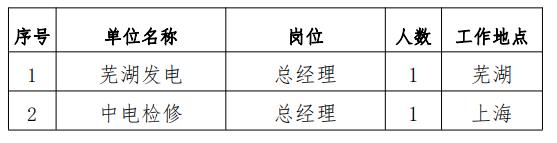為進一步引進和吸納高素質人才,現市場化選聘在中國電力所屬三級單位蕪湖發(fā)電有限責任公司(簡稱“蕪湖發(fā)電”)總經理、中電電力檢修工程有限公司(簡稱“中電檢修”)總經理崗位。具體事項如下:
