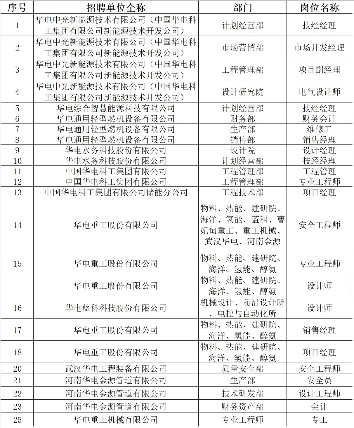 華電科工集團(tuán)所屬部分基層企業(yè)面向系統(tǒng)內(nèi)外公開招聘的公告