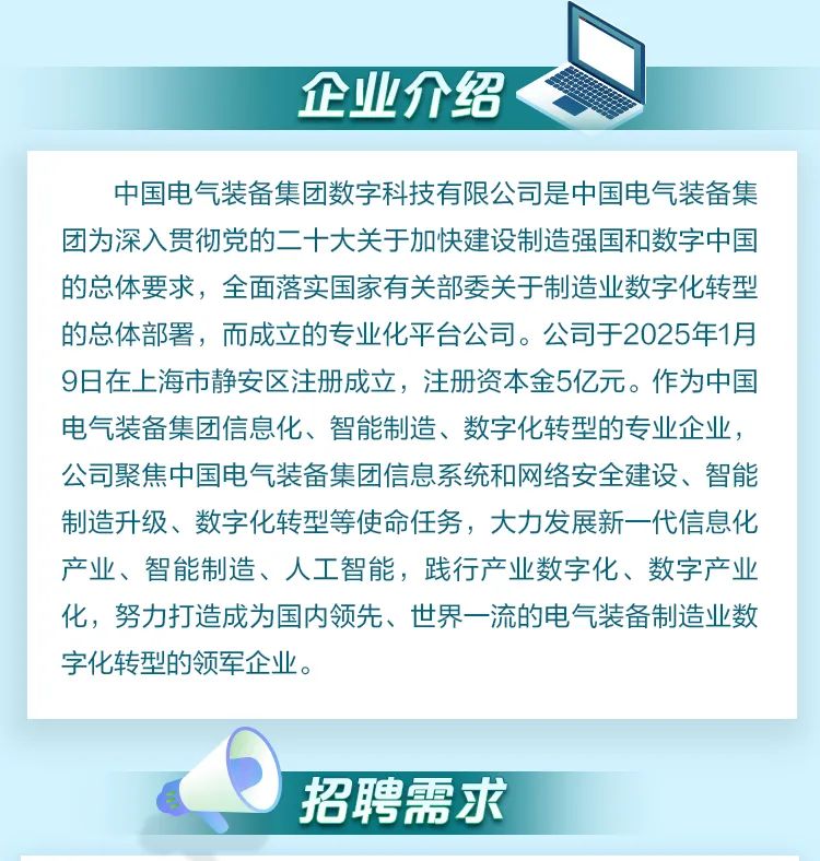 中國電氣裝備集團數(shù)字科技有限公司招聘公告