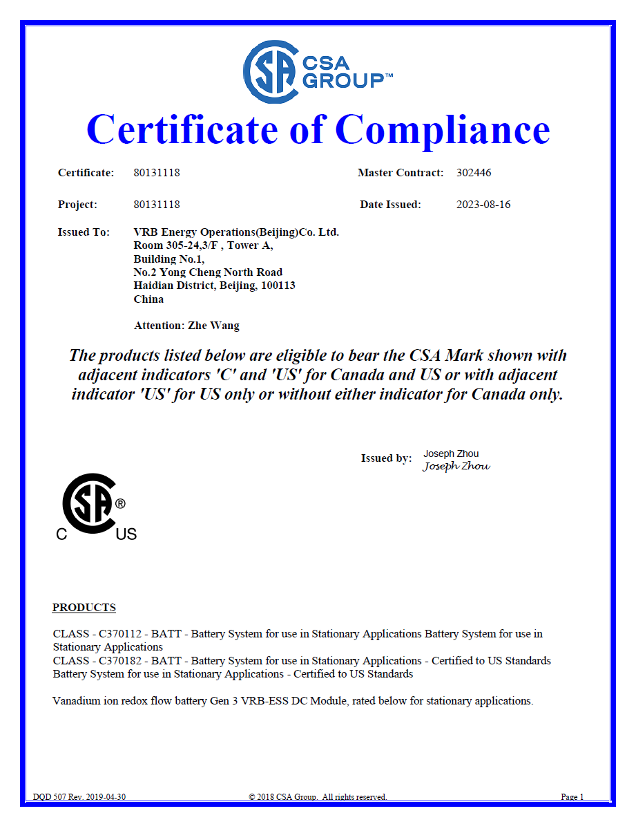 兆瓦級系統(tǒng)UL1973認(rèn)證證書