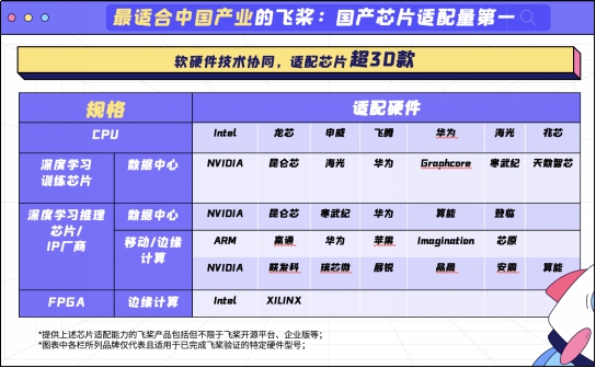 以百度飛槳為例,經(jīng)過(guò)對(duì)大量真實(shí)生產(chǎn)場(chǎng)景的反復(fù)打磨,已經(jīng)能夠使傳統(tǒng)企業(yè)在智能化轉(zhuǎn)型中實(shí)現(xiàn)高性能開發(fā)、大規(guī)模訓(xùn)練、不同場(chǎng)景和不同軟硬件平臺(tái)敏捷部署。更重要的是,飛槳已經(jīng)和包括百度昆侖芯、華為昇騰、英特爾、英偉達(dá)在內(nèi)的22家國(guó)內(nèi)外硬件廠商,完成了31種芯片的適配和優(yōu)化,覆蓋全部國(guó)內(nèi)外主流芯片,最大程度幫助企業(yè)降本增效。