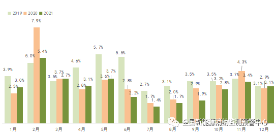 2021年全國棄光率逐月變化情況