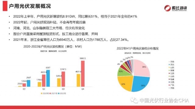 2022年9月27日,在中國光伏行業(yè)協會的指導和國內領先的分布式戶用企業(yè)支持下,由索比光伏網主辦的“2022年中國戶用光伏品牌大會暨中東部省份分布式項目開發(fā)研討會”在浙江寧波召開。索比光伏網副主編尹也澤對光伏供應鏈與分布式應用市場進行了回顧展望。尹也澤副主編分析,整體看,今年全年全國光伏發(fā)電新增裝機有望超過90GW,其中分布式光伏仍將占據“半壁江山”。