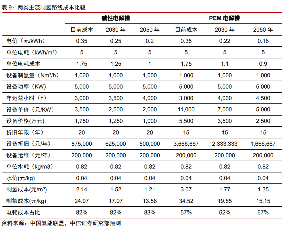 我們判斷至2030年,行業(yè)平均的用電成本可以降至0.25元/kwh,實現(xiàn)與化石能源制氫成本的平價。