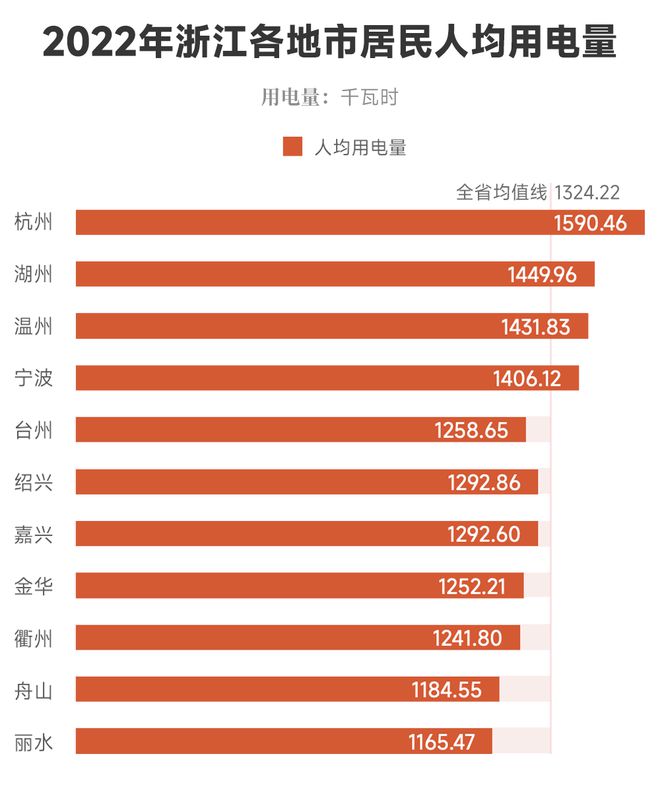 人均用電量的大幅增加,從地域分布來看,沿海地區(qū)人均用電水平普遍較高,偏內陸地區(qū)人均用電水平較低,整體呈現“東多西少”的特點。從戶均用電水平來看,同樣呈現“東多西少”的分布特點,杭州、嘉興、溫州、湖州、寧波地區(qū)較其他城市優(yōu)勢明顯。其中,嘉興人均用電水平列全省第7,但戶均用電水平列全省第二,主要原因為地區(qū)戶均人口偏高,戶數低于全省均值,導致戶均用電水平偏高。