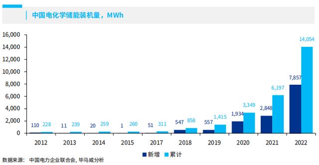 截至2022年底,全國電力安全生產(chǎn)委員會19家企業(yè)成員單位累計投運電化學儲能電站472座、總能量14.1GWh、同比增長127%;2022年,新增投運電化學儲能電站194座、總能量7.9GWh,占已投運電站總能量的60.2%,同比增長176%。