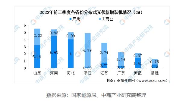 從各省份分布式光伏新增裝機(jī)情況來看,山東、河南、河北分布式光伏新增裝機(jī)較大。其中,山東戶用分布式光伏新增裝機(jī)3.19GW,工商業(yè)分布式光伏新增裝機(jī)2.32GW。上述地區(qū)主要是有電或不缺電地區(qū),因此基本為并網(wǎng)型分布式新能源發(fā)電系統(tǒng),據(jù)不完全統(tǒng)計(jì),分布式并網(wǎng)型光伏市場(chǎng)規(guī)模約占分布式95%左右,其主要企業(yè)是浙江正泰安能電力系統(tǒng)有限公司、江蘇昱德新能源科技有限公司、深圳禾望電氣股份有限公司等并網(wǎng)新能源發(fā)電系統(tǒng)制造企業(yè)。整個(gè)離網(wǎng)型光伏/風(fēng)光互補(bǔ)供電系統(tǒng),因?yàn)樗姆植贾饕谶呥h(yuǎn)地區(qū)、無電地區(qū)、缺電地區(qū)和電力不穩(wěn)定地區(qū),市場(chǎng)規(guī)模5%左右,約230萬(wàn)千瓦左右。主要是南京歐陸電氣股份有限公司、上海致遠(yuǎn)綠色能源股份有限公司、江蘇乃爾風(fēng)電技術(shù)開發(fā)有限公司等為主的以離網(wǎng)新能源發(fā)電系統(tǒng)制造企業(yè)。